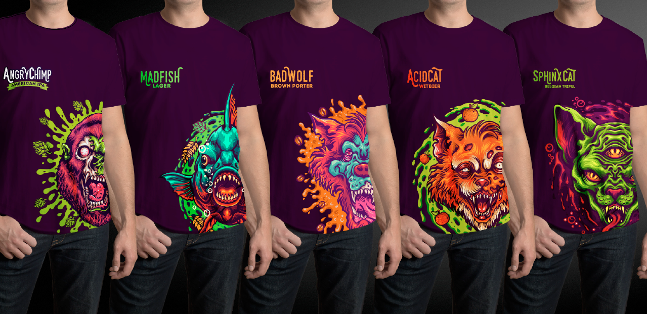 Desenvolvimento de uma colecção de Rótulos. Mediante o briefing do cliente foi definido um estilo gráfico que estaria ligado a uma realidade mais fantasiada do caracter de cada cerveja. Neste sentido, foram identificados os animais que personalizavam o caracter da cerveja e no processo de ilustração dos rótulos, foram criados as personagens e criados ainda vectores que reforçavam as características de sabor de cada uma das cervejas, Para este projecto foram desenvolvidas as Ilustrações, Naming e concepção dos Rótulos.