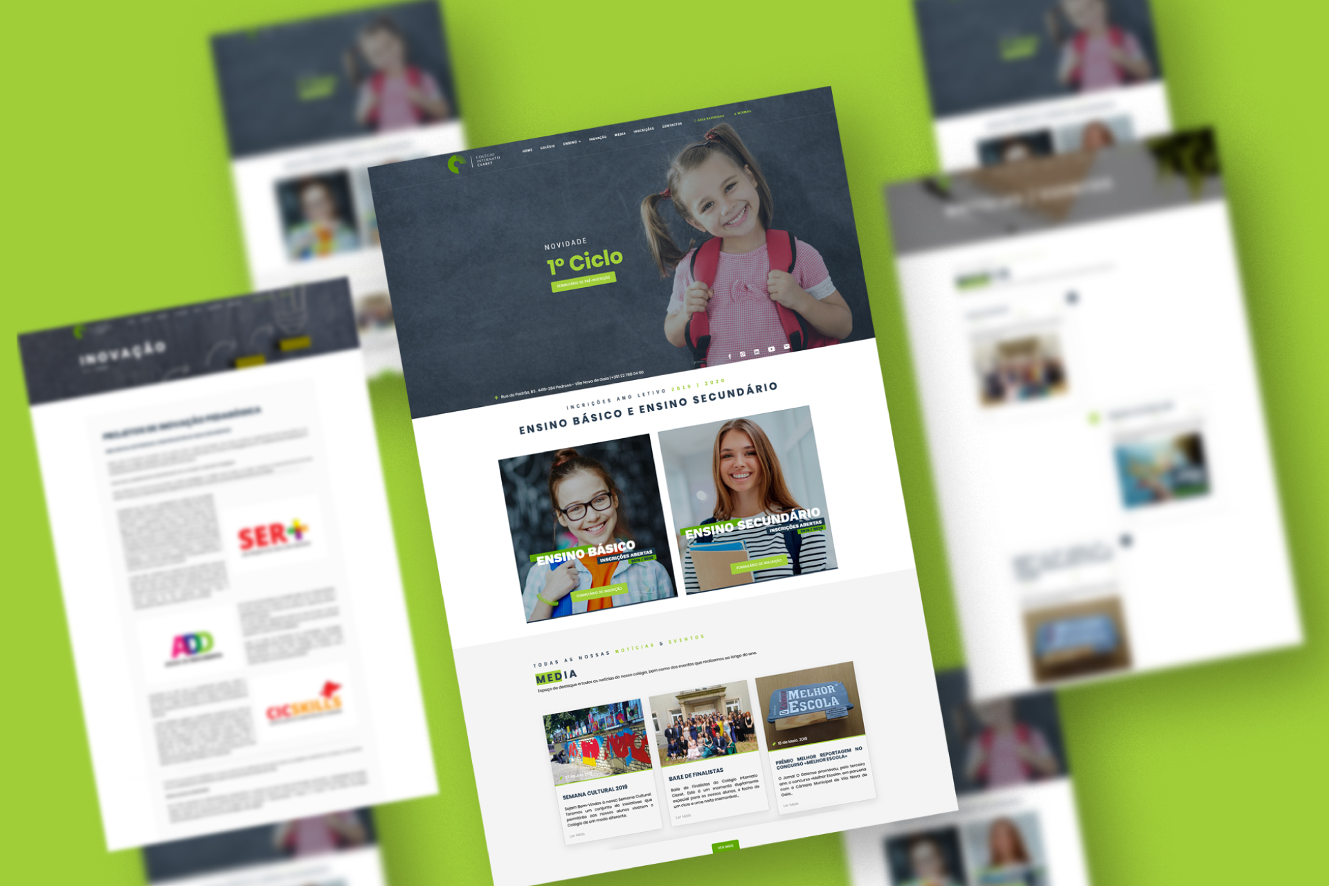 Para o Colégio Internato Claret, foi desenvolvida uma proposta de branding, envolvendo a criação de um novo logotipo, bem como design do website
