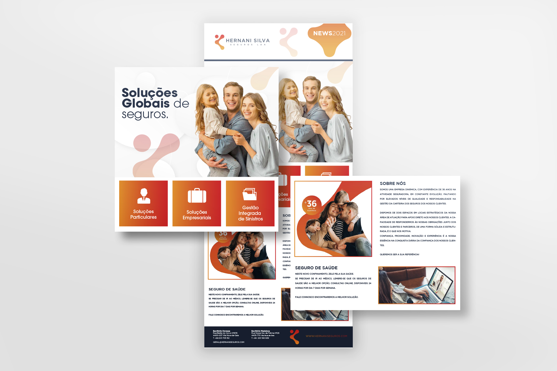 O branding da marca Hernani Silva Seguros contou com o desenvolvimento de Branding, o website institucional da marca, Newsletter e design da linha Gráfica dos posts nas redes sociais e de meios de comunicação institucional.